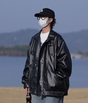 Hochwertige PU-Leder-Bomber jacke für Herren Winter Loose Fit Motorrad jacke Bänder Dekoration High Street Style